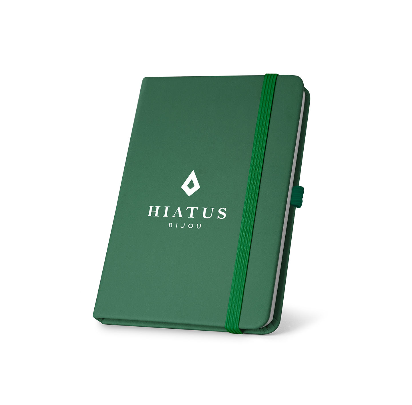 Caderno A5 de capa dura em c. sintético, com 160 páginas lisas