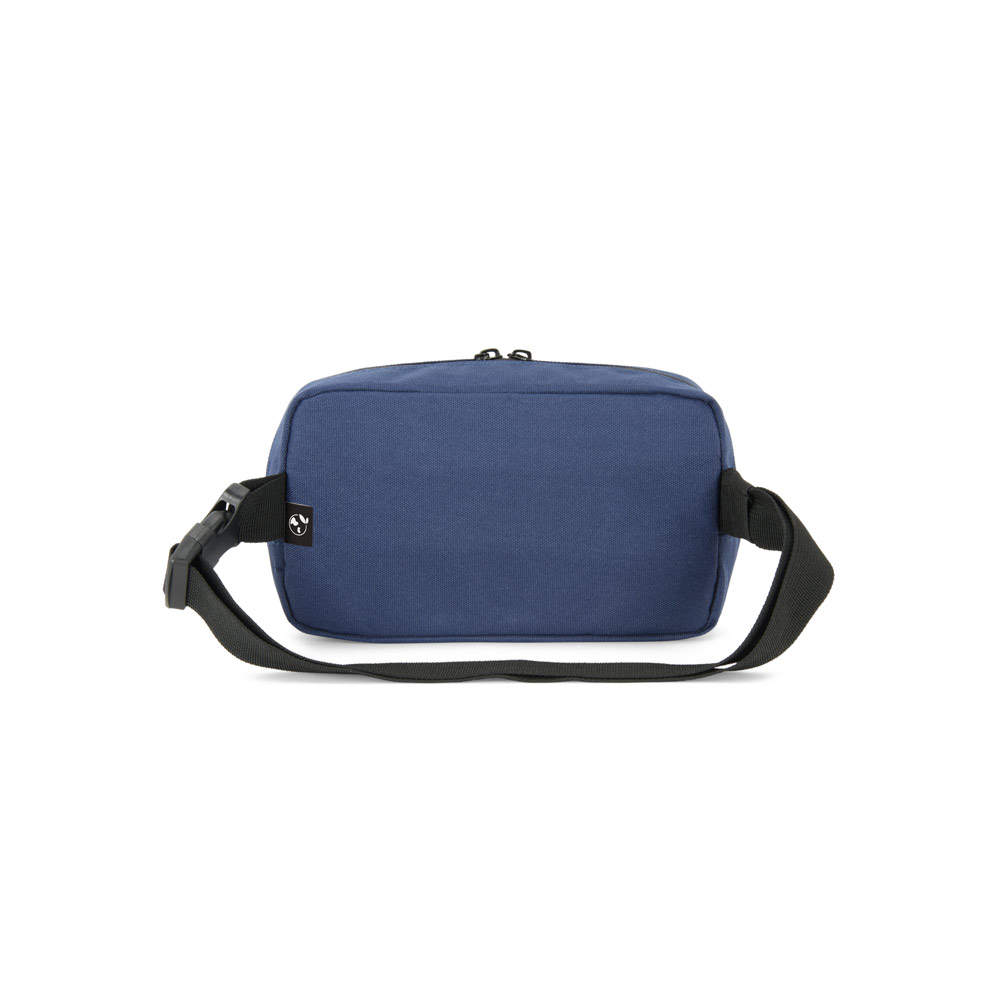 Pochete em poliéster reciclado 600D e forro em poliéster reciclado 210D. Possui um compartimento principal e um bolso frontal