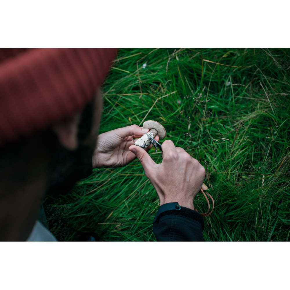 Canivete com lâmina em aço inox e cabo em bambu, com fecho de segurança. Contém uma pega em corda para fácil transporte. Fornecido em caixa presente de papel kraft reciclado. Certificação EU Food Grade. A cor e o resultado da impressão nos materiais naturais pode variar entre produtos